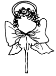 Halo: Cut 3 1/2" of flat gold braid (or rick rack or ribbon) and overlap the ends at right angles as shown. Glue ends together and then glue this point to the BACK of the head so that halo stands up over head as shown.
