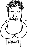 page- "tying" bows,) and glue to back of body at approximate "shoulder"