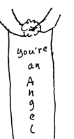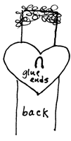 Wings: Paint heart for wings with gold acrylic (OR spread glue all over surface of heart and glue onto a piece of gold paper such as wrapping paper, trim flush with edge of heart).Glue FRONT (gold side) of heart to BACK of body as shown. Heart may be right side up or upside down, whichever you like best.